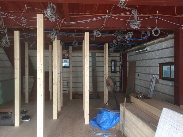 そのままでは壁のボードを張ることが出来ませんので、このように平らになるようそぎ落とします。